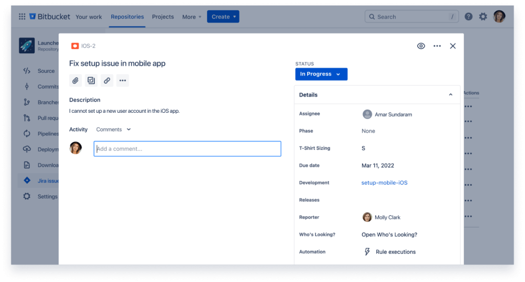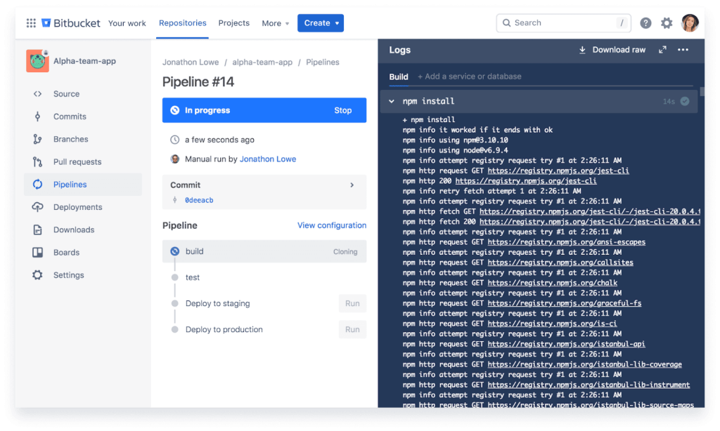 - Built-in CI/CD: As we saw before, this feature allows you to write, test, and deploy code directly in Bitbucket.