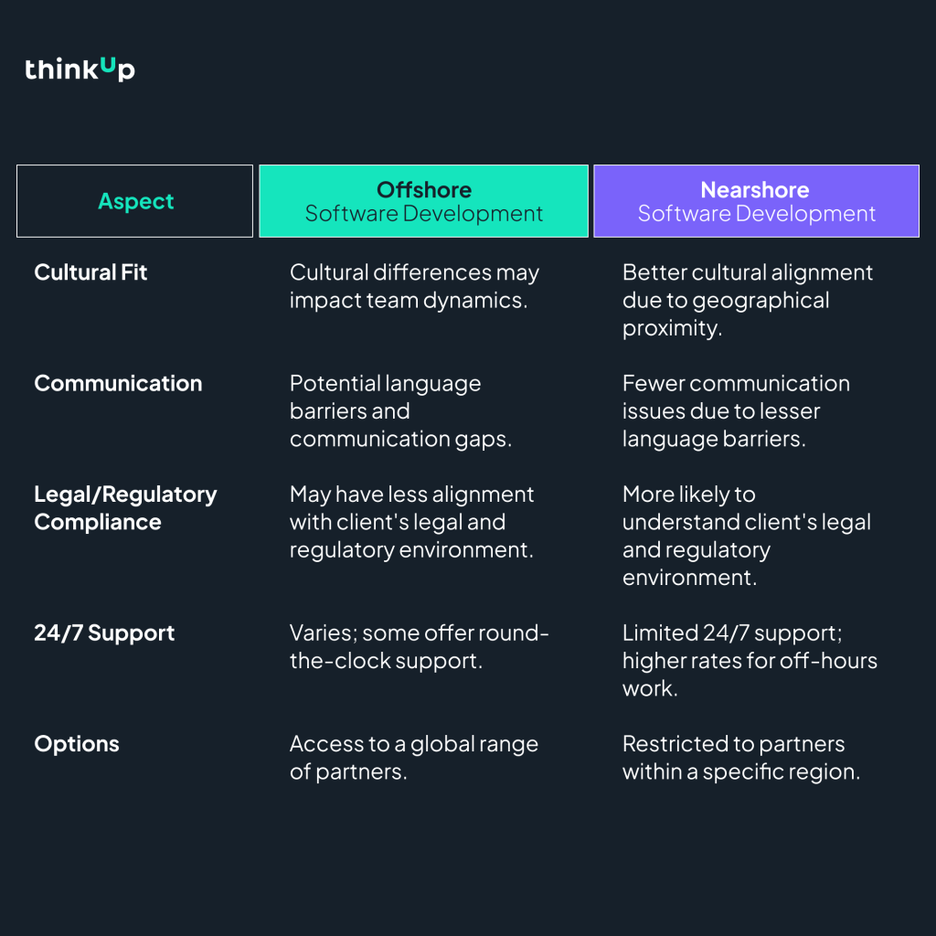 - Limited 24/7 Support: Nearshore companies may not offer round-the-clock support and charge higher rates for working outside standard hours.